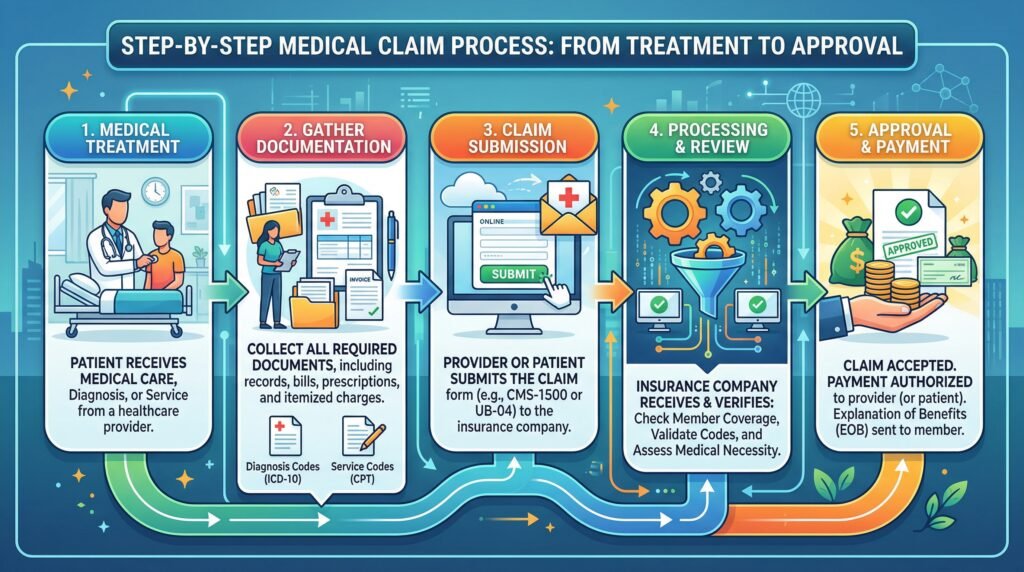 Successful claim processing depends on complete documentation including medical reports, prescription orders, hospital bills, diagnostic test results, and doctor certificates. Maintaining organized medical records expedites reimbursement.